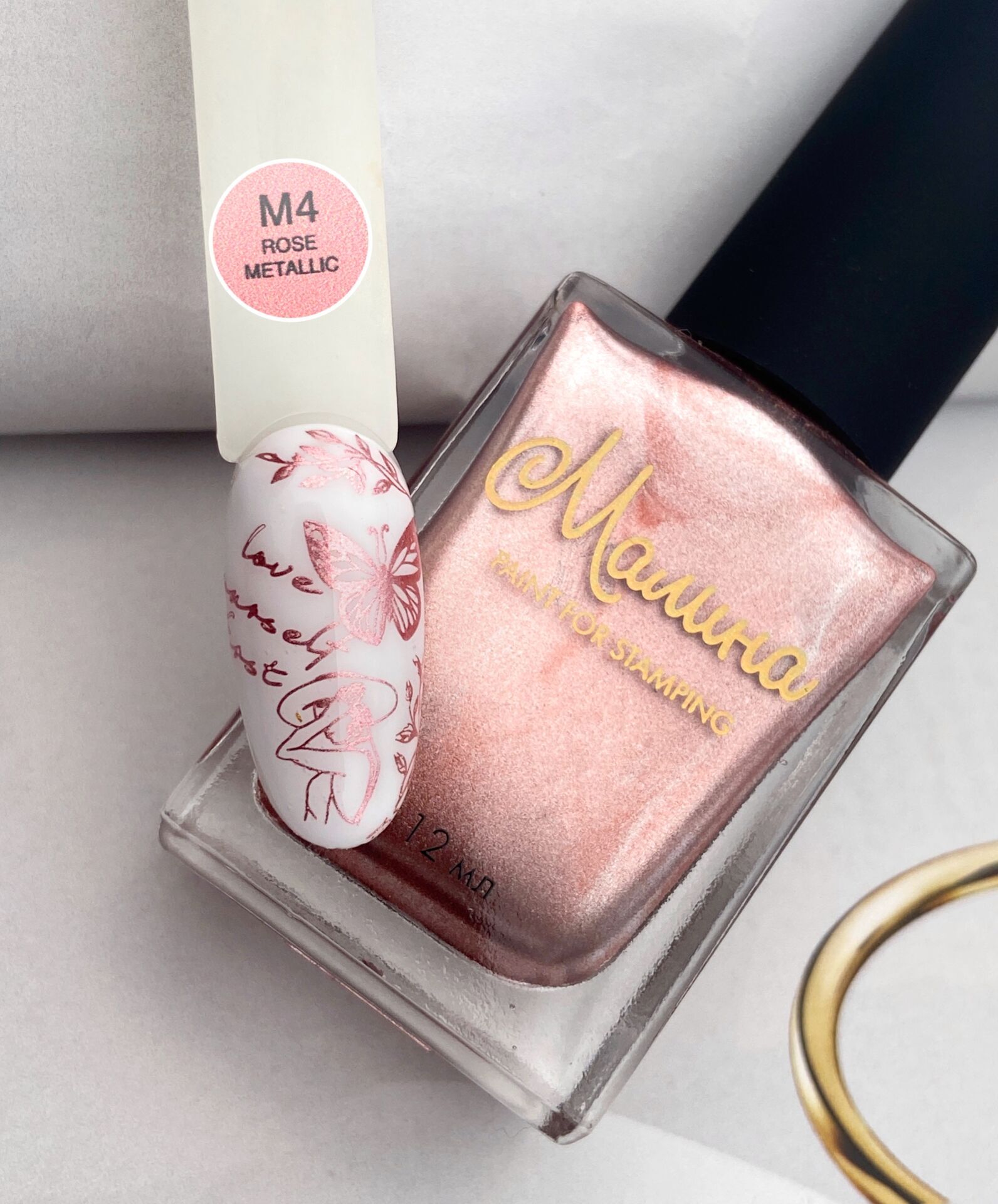 Malina Stamping Oje Metalik Pembe - Rose Metallic M4 (12ml), zarif pembe tonlarını metalik ışıltılarla buluşturan özel bir stamping ojesidir. Yoğun pigmentasyonu ve mükemmel desen transferi ile tırnaklarınıza şıklık katacak. Hızlı kuruma özelliği sayesinde profesyonel ve kişisel kullanım için idealdir. Göz alıcı metalik pembe rengiyle tüm nail art tasarımlarınızda harika sonuçlar elde etmenizi sağlar.