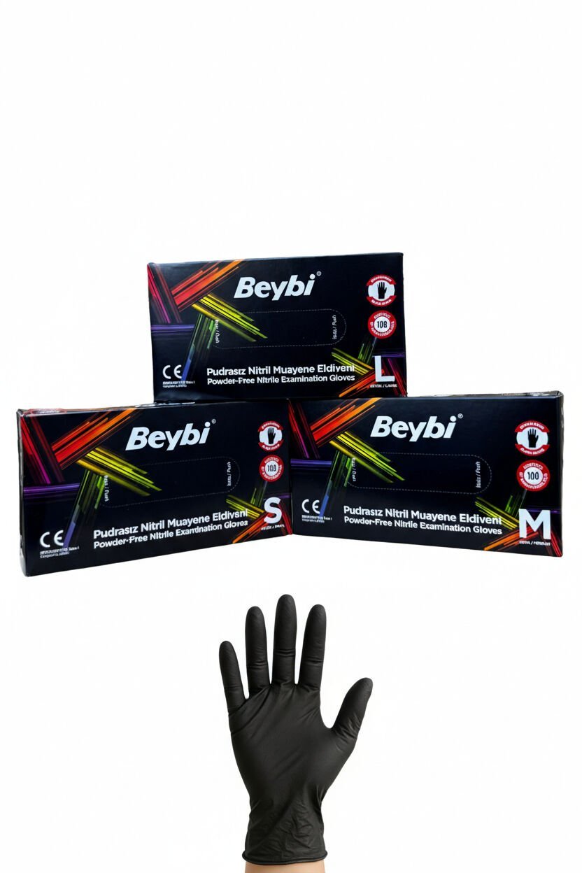 Beybi Pudrasız Siyah Nitril Muayene Eldiveni - 100'lü Kutu ( S )