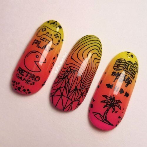 • Bir yuvarlanma hareketi ile çizimi stampera alıp, ardından damgalama tasarımının mutlu sahibinin tırnaklarına aktarıyoruz.